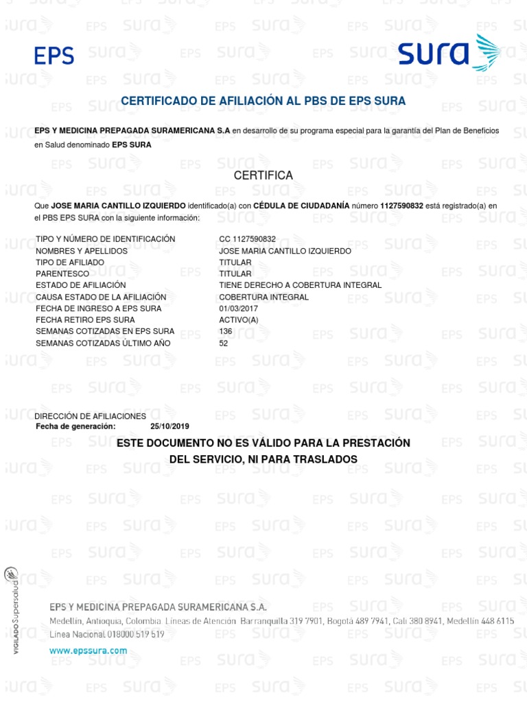 En el portal web de sura eps además de poder obtener el certificado, también se pueden realizar otras ante cualquier duda, inquietud o consulta los afiliados a sura eps pueden comunicarse. Citas médicas eps sura ✅ realice su trámite en línea o por teléfono ✅ solicitar cita en la ips de atención básica ambulatoria. Todos los afiliados en eps sura habilitados y validados en el portal en línea. Los pasos a seguir son: Planilla de pago efectuado en eps sura a través de pila. No te preocupes aquí te decimos. Explore tweets of eps sura @epssura on twitter. Realizamos trámites de afiliación a eps sura en línea. Con el certificado sura, los afiliados pueden acceder a múltiples beneficios y ventajas. Последние твиты от eps sura (@epssura). La orientación de servicios eps sura, ofrece un abanico de múltiples opciones para sus afiliados. Los beneficiaros de eps sura pueden disfrutar de distintos beneficios, en esta. 1 ¿cómo me puedo afiliar a para poder acceder al sistema de citas médicas del eps sura vamos a tener que estar afiliados a la.